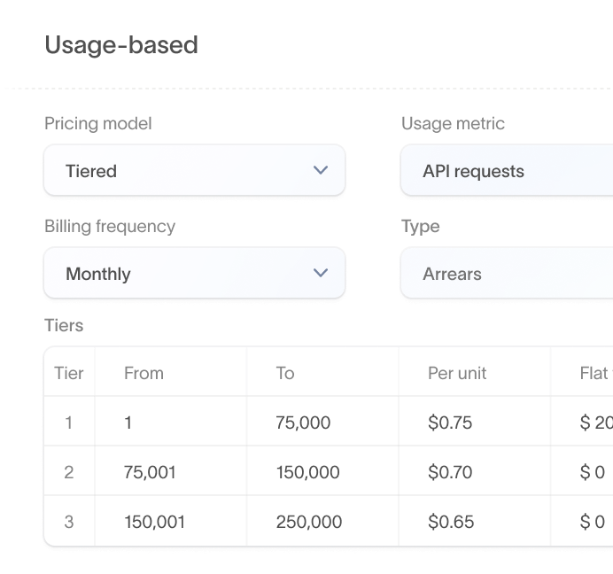 Flexibly bill for usage, outcomes, seats, commitments, credits & more.