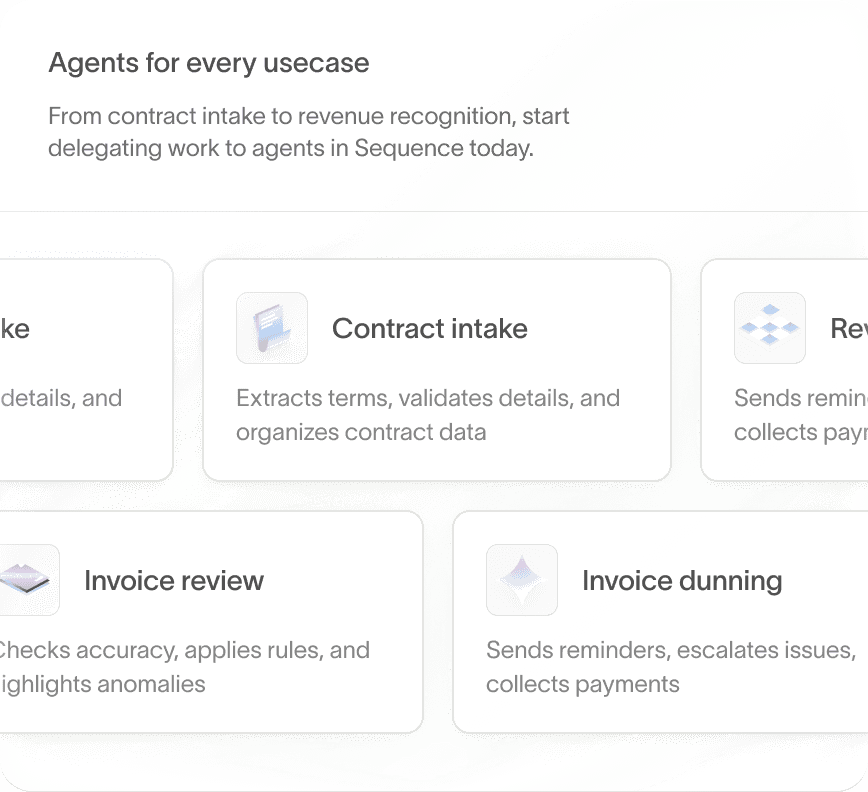 Sequence unifies revenue operations in one automated platform. Unlock error-free revenue collection for custom deals at scale and run receivables on autopilot.